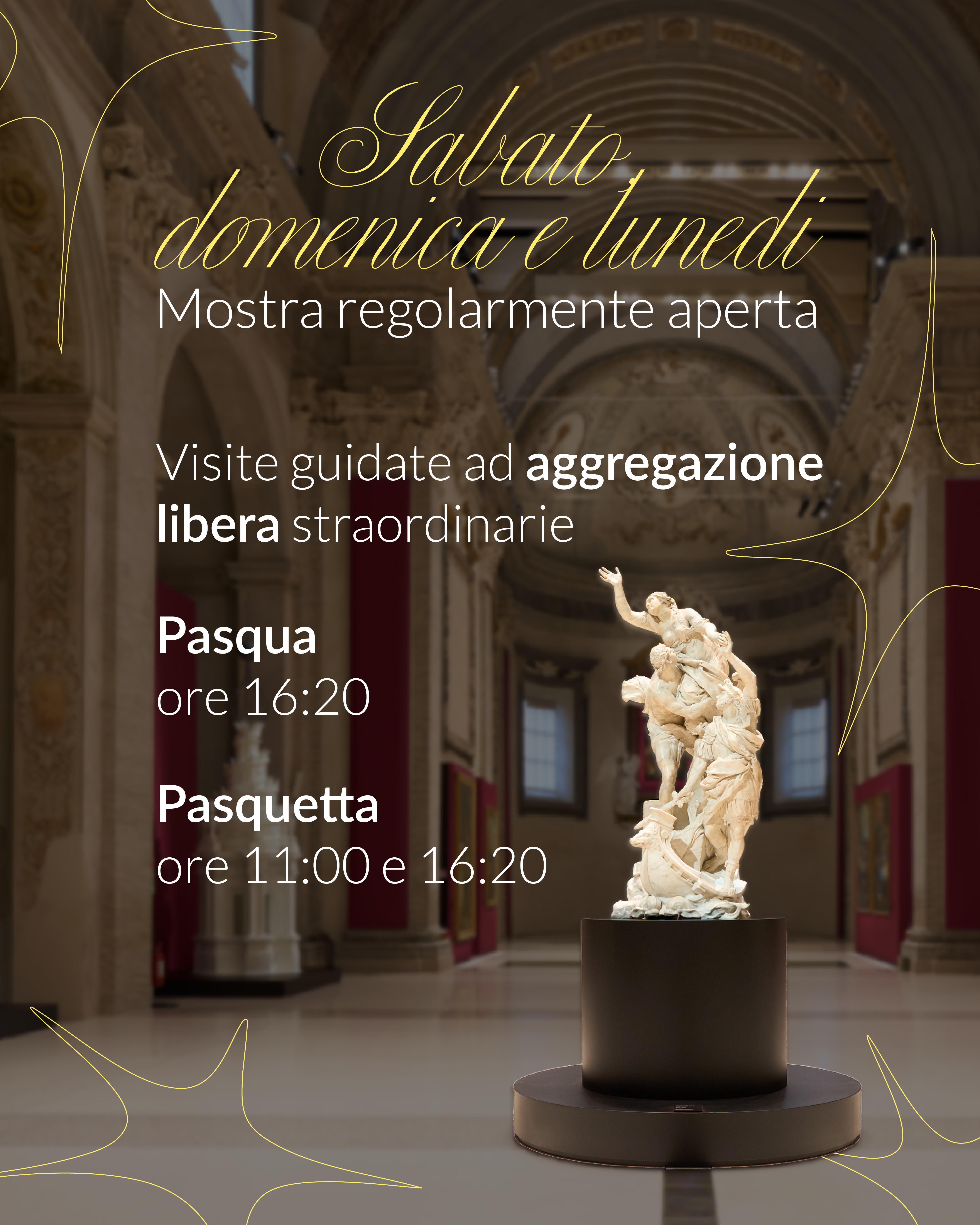 Inoltre, domenica 5 e lunedì 6 aprile verranno organizzate alcune visite guidate ad aggregazione libera straordinarie!